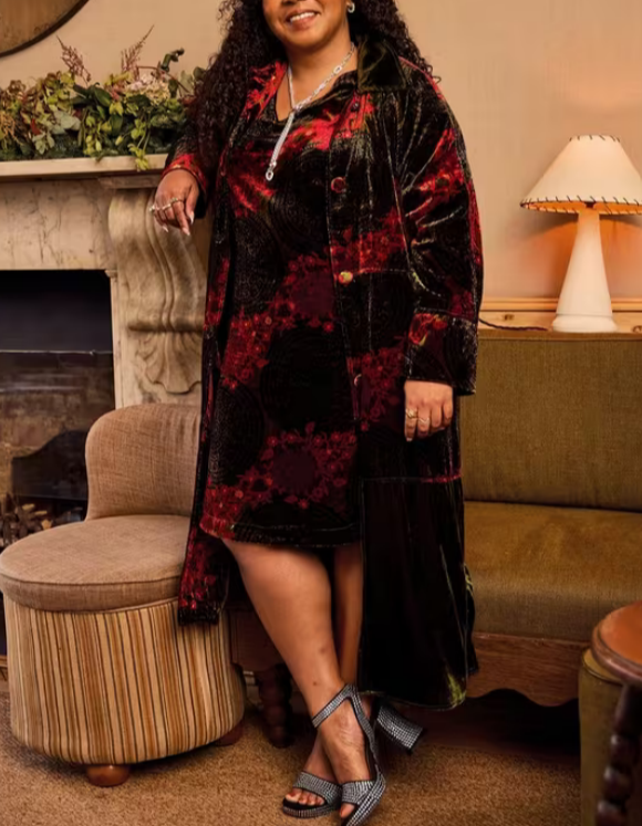 Cleo Velvet Mix Dress In Green Print